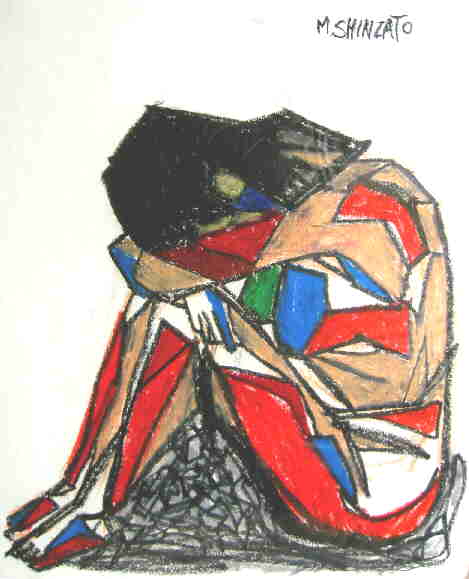 ひざまずき顔を伏せる女women knelt
