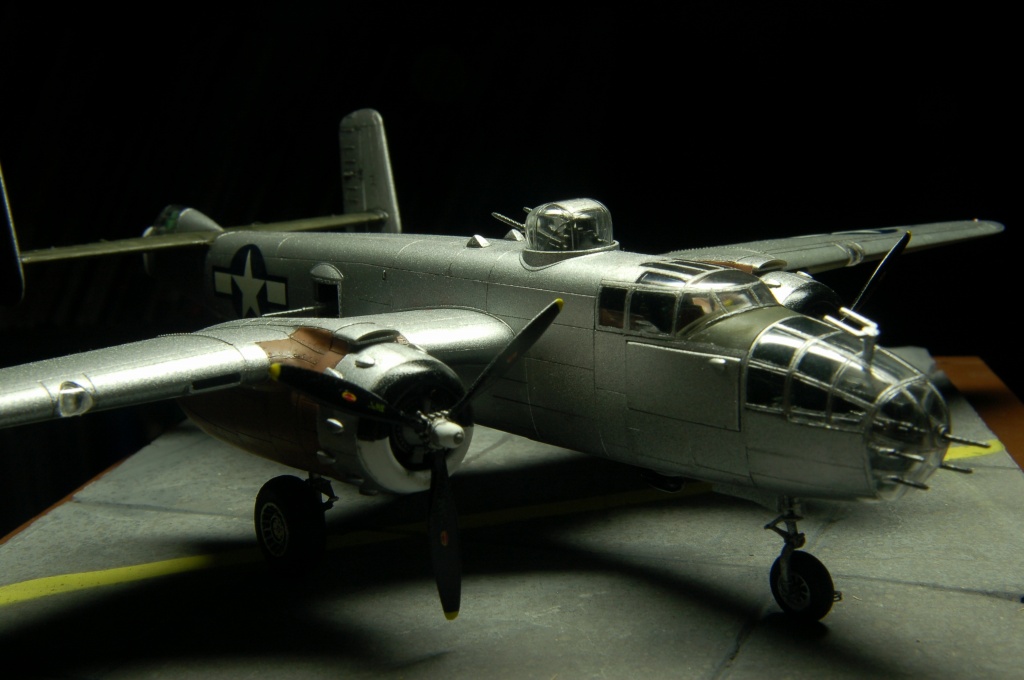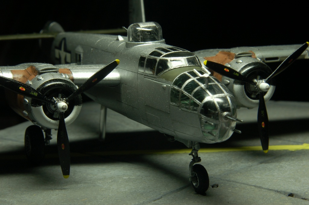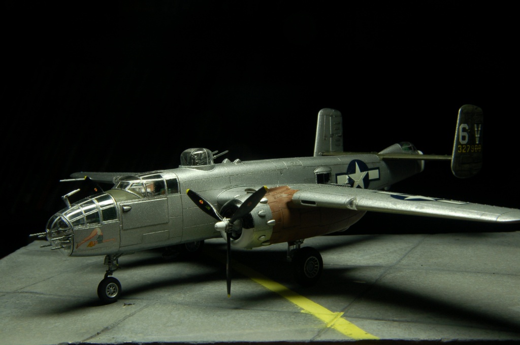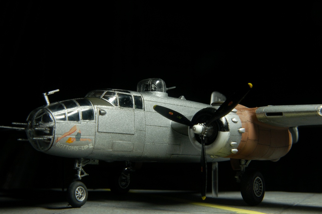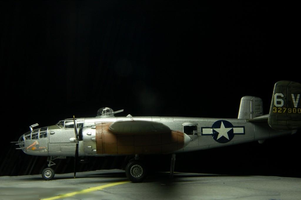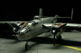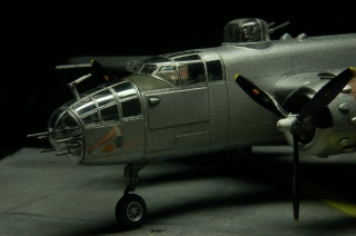 このB−25は内部の構造まで再現されているモデルであるが、完成してしまうと全く見る事ができないためにあまり内部構造の作成の方には力を入れない方が良かった。パーツ点数は多く作成には忍耐が必要であるが、大人の模型製作はこれくらいじっくり作るものの方がかえって醍醐味があってよいように思う。エンジン部分の精密な造りにこだわりを感じる事ができる。作ってみて損の無い満足なキットである。