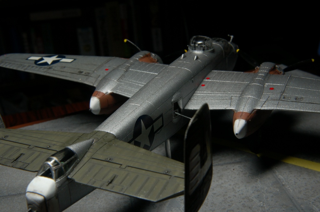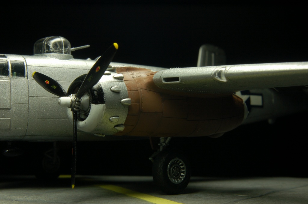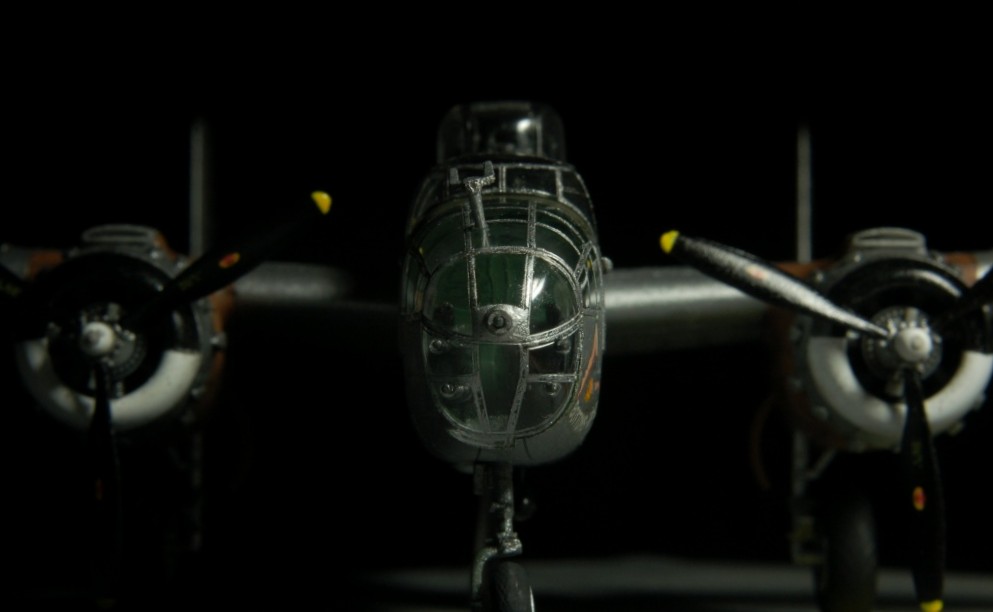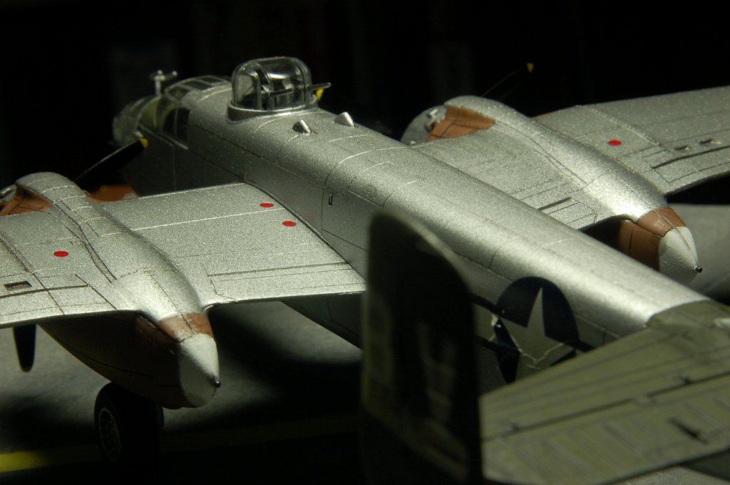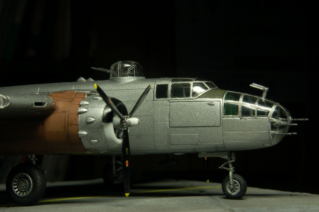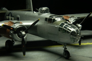 このB−25は内部の構造まで再現されているモデルであるが、完成してしまうと全く見る事ができないためにあまり内部構造の作成の方には力を入れない方が良かった。パーツ点数は多く作成には忍耐が必要であるが、大人の模型製作はこれくらいじっくり作るものの方がかえって醍醐味があってよいように思う。エンジン部分の精密な造りにこだわりを感じる事ができる。作ってみて損の無い満足なキットである。